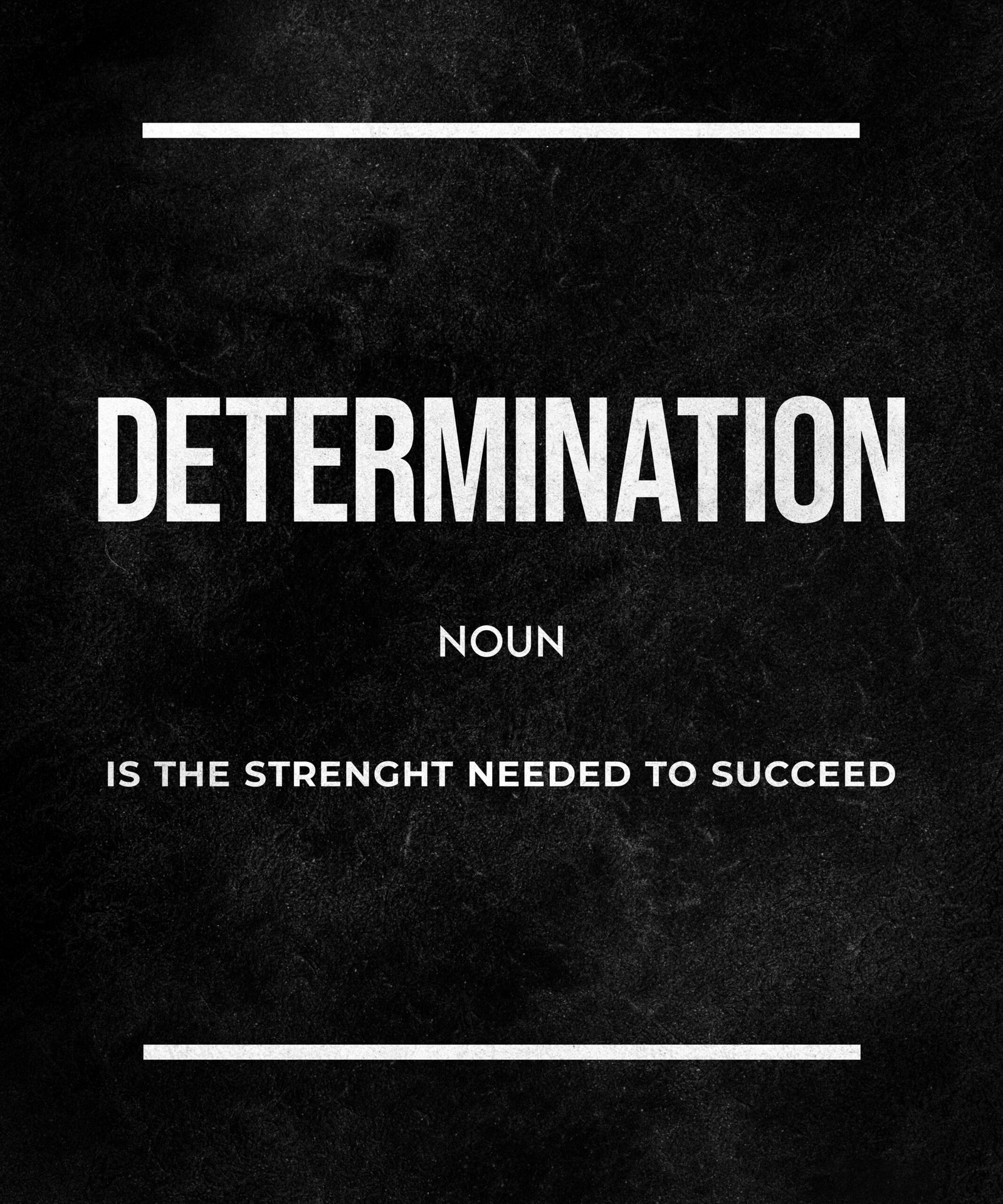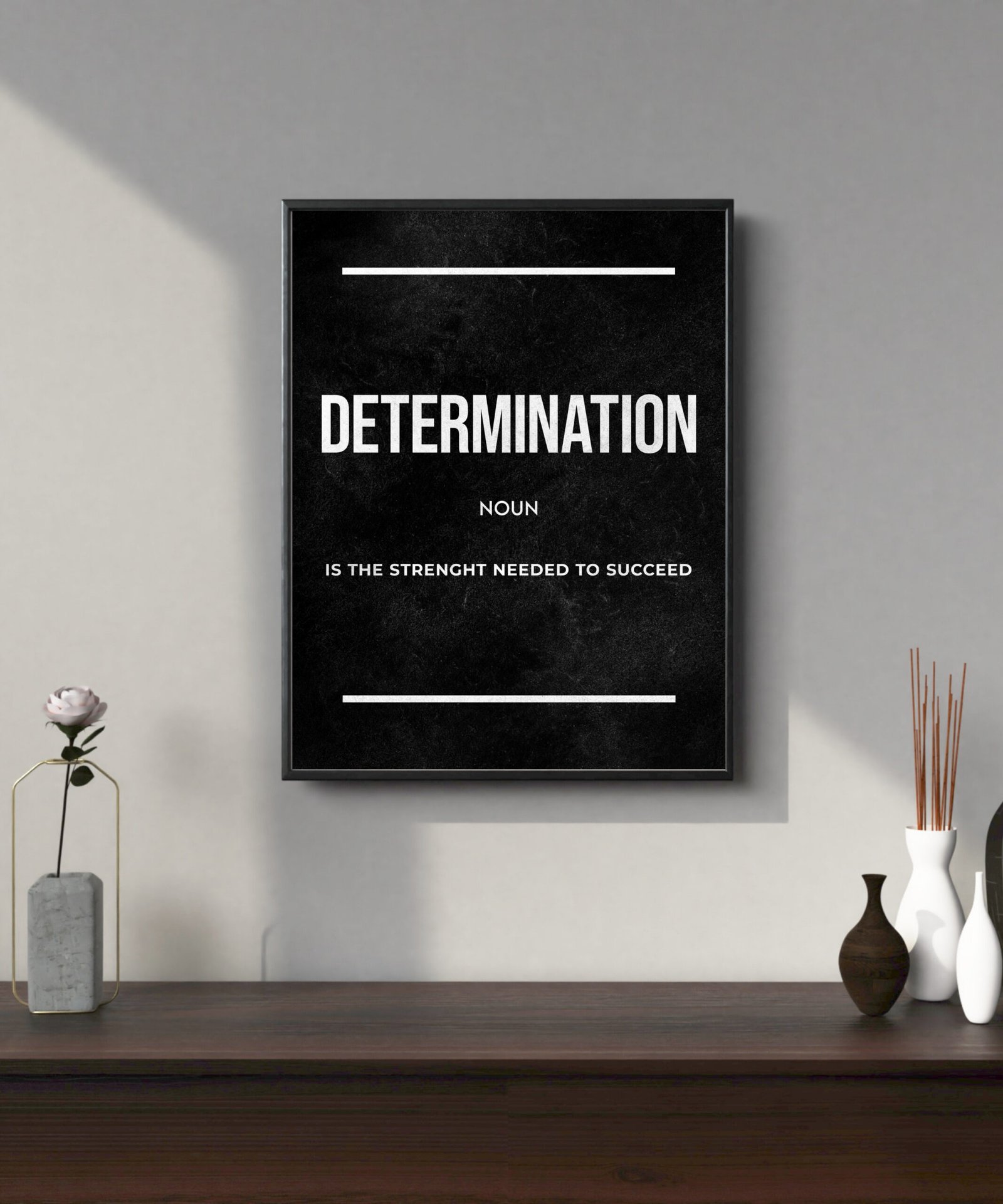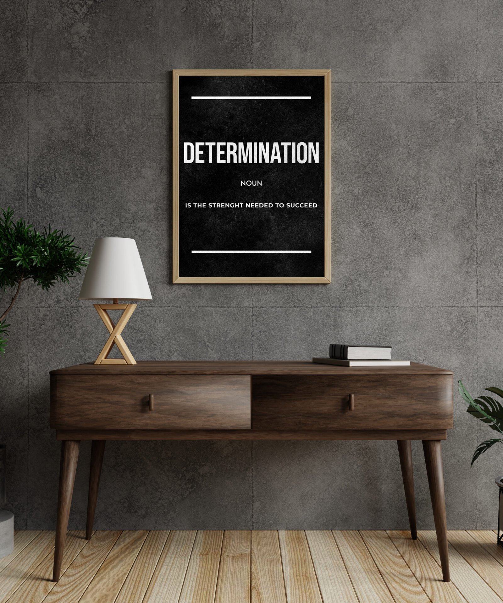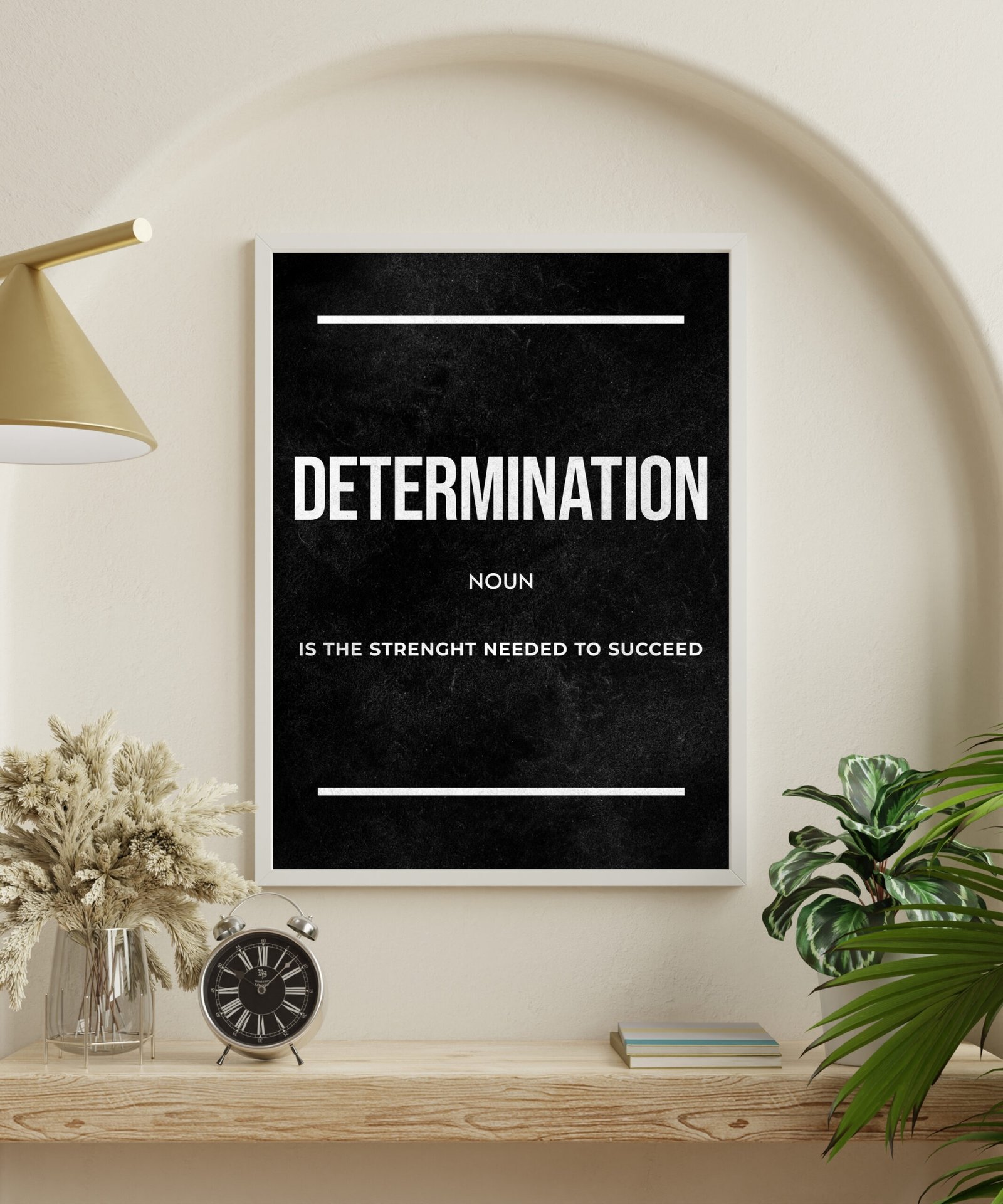 A minimalist and powerful print defining “Determination” as the strength needed to succeed.