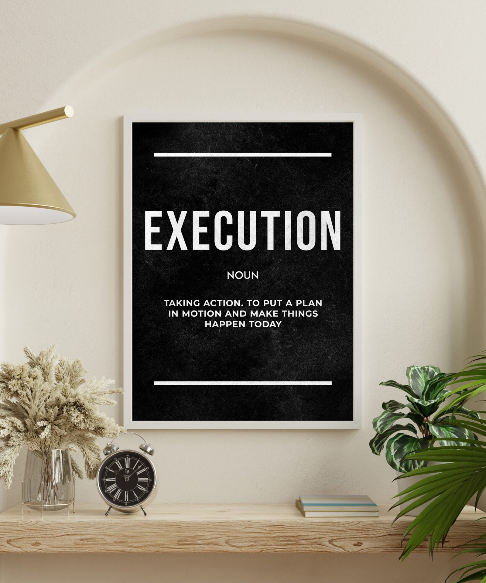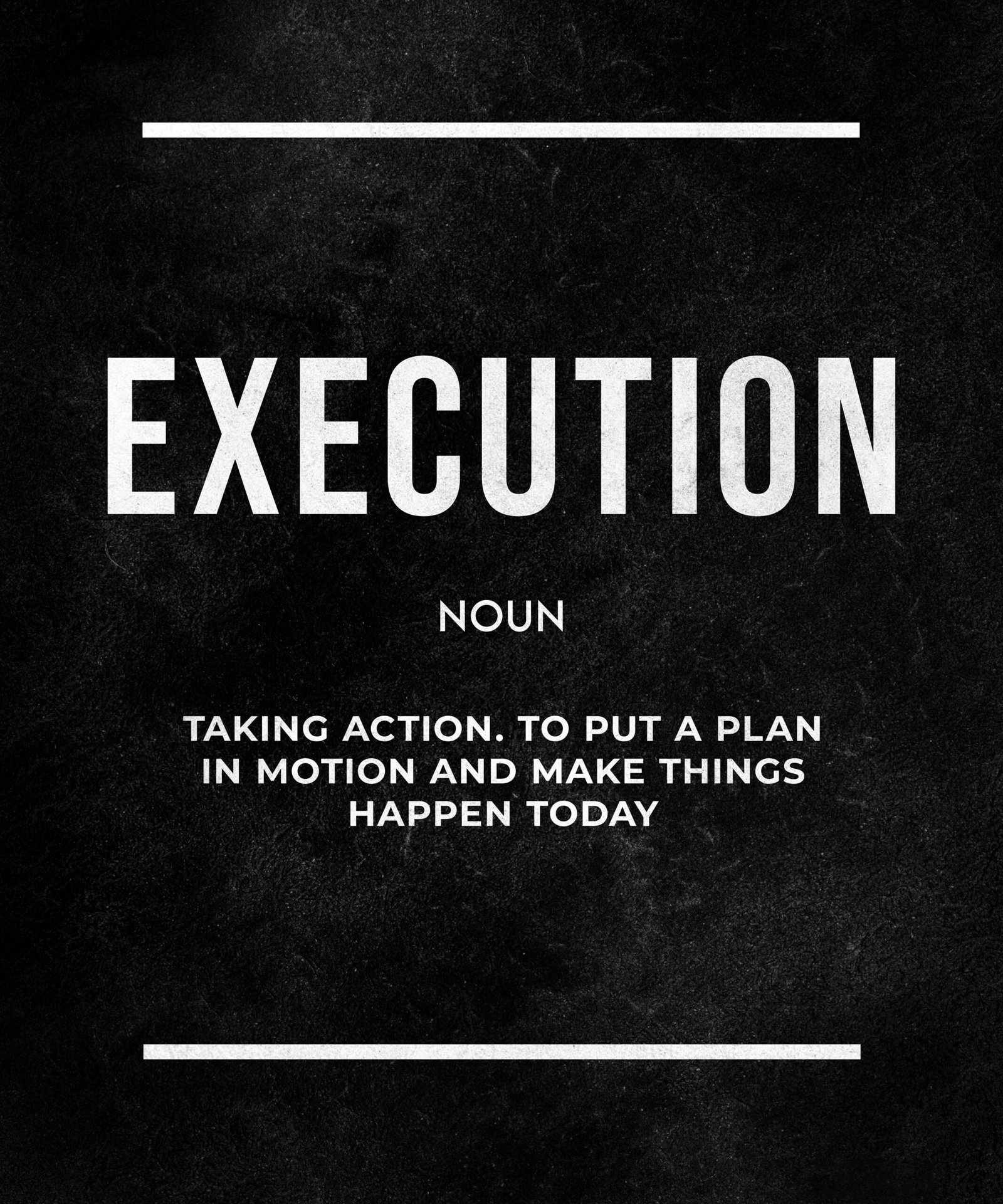 A minimalist and powerful print defining “Execution” as the art of taking immediate and decisive action.