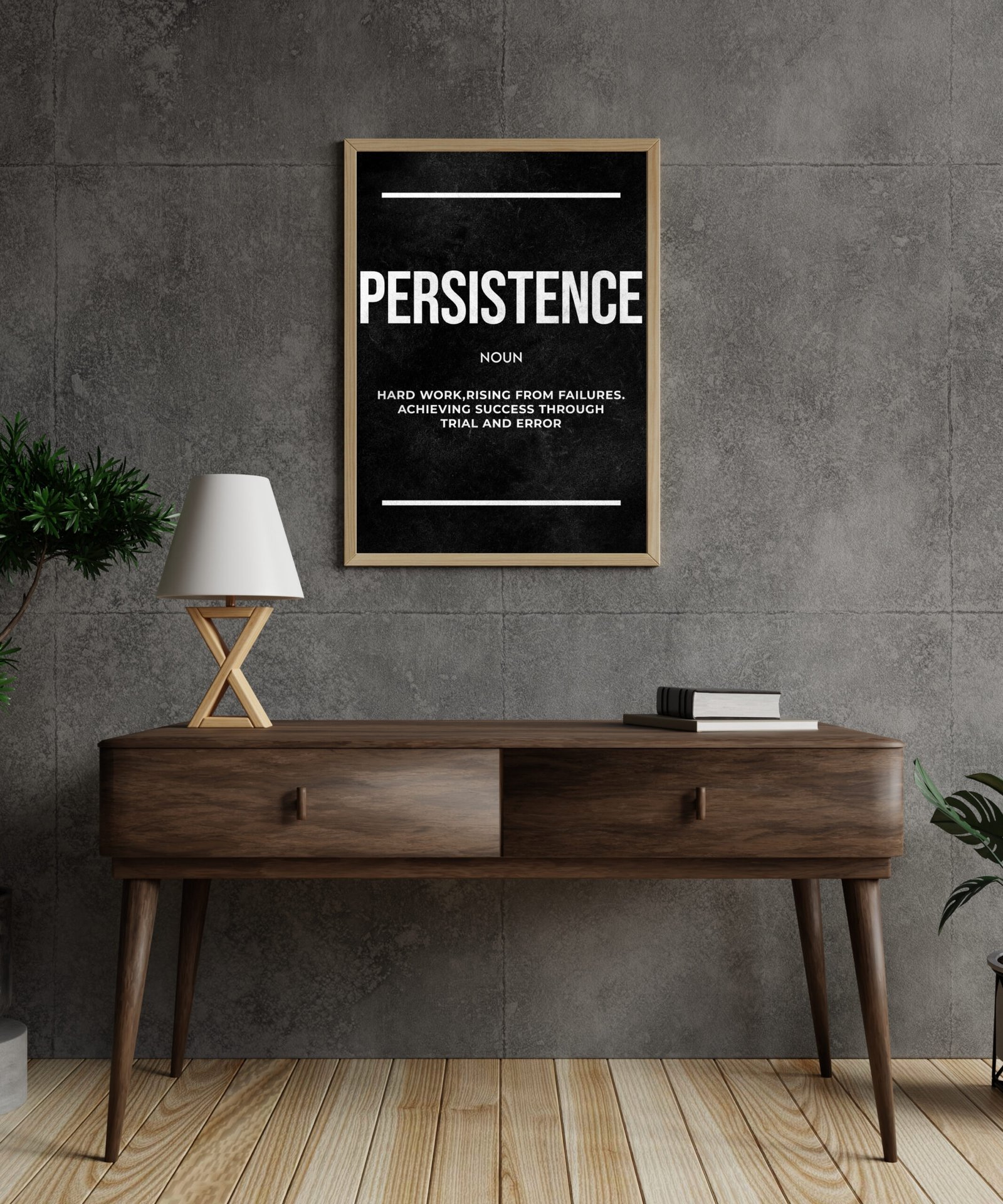 A minimalist and powerful print defining “Persistence” as the key to achieving success through trial and error.